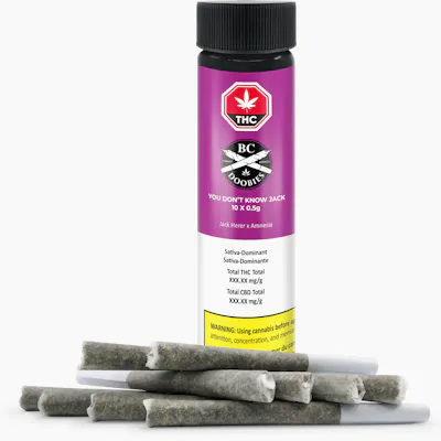 You Don’t Know Jack leans into two legendary Sativa lines, Jack Herer and Amnesia, brought together in a set of ten neatly packed BC Doobies, each showing their character from the moment the seal breaks. It opens with sharp orange and sweet spice, then shifts into a hazy, woody arrangement, a flavour-driven cultivar that reflects the distinct qualities of its lineage. Uncluttered and true to its roots, You Don’t Know Jack arrives straightforward and classic.