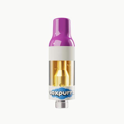 Crank up the flavour with this sticky sweet Jam. VoxPuffz Grape Jamz is giving the loudest hits of grape. VoxPuffz 1.2g 510 Carts contain triple-distilled distillate boosted with botanical terpenes for the smoothest, most flavourful experience possible. This show-worthy cart features a huge 1.2g tank and a comfortable ceramic mouth tip.