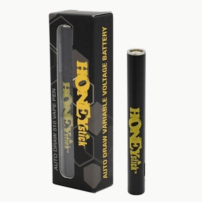Introducing the New Generation Inhale-Activated 510 Battery, the perfect blend of simplicity, and style. Designed for those who appreciate the convenience of simply inhale-activated vaping and the classic 510 thread pen-style battery, this sleek device is a standout choice. Adorned in a sophisticated matte black finish and accented with a vibrant yellow HoneyStick logo, it's tailored for those who desire elegance in their vaping journey. Operating Made Simple: Turn ON/OFF the 510 battery with 5 clicks. Navigate through four power settings with just three clicks on the operating button, each indicated by a distinct LED light color: Blue for 3.5V Green for 3.7V Yellow for 3.9V Red for 4.1V. Activate the 10-second pre-heat function with two clicks, priming your vape cart for an optimal vaping experience. (one more click to turn off the pre-heat mode, at any time) Included in this package is a USB-C charger cable, making this the ideal stick alternative for any 510 thread battery enthusiasts. This slender, 510-thread battery boasts a substantial 400mAh capacity, offering four voltage power settings for a customizable vaping experience. Additionally, it comes equipped with a secure locking feature and a handy preheat function, ensuring it packs the power and versatility of larger vape batteries. Unique to this 510 vape battery is its innovative location of the operating button - at the tip of the battery. This button controls the device temperature/voltage settings, activates the pre-heat function, and activates the unit itself with 5 clicks to turn it on and off Features: Auto-Draw (Inhale Activated) Functionality Gen 2 Vape Battery Design w/ Settings Adjustment Button 4 Power Settings Options: 3.5V (Blue), 3.7V (Green), 3.9V (Yellow) and 4.1V (Red) Preheat functionality Inhale Activated 510 Thread Battery 400mAh Vape Battery Capacity USB-C Rapid Charge Low power indication alert
