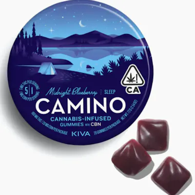 A physical road takes you to a physical place. Camino (“road” in Spanish) takes you to a state of mind. Settle in for a smooth slumber in a cozy lake cabin and let all your worries go. Our Midnight Blueberry gummies pair relaxing terpenes with a hint of chamomile and lavender for a soothing, restful effect that’s boosted by a key ingredient- CBN. These gummies contain 5MG of THC and 1 MG of CBN to support not just your ability to fall asleep, but to encourage a more restful night’s sleep overall. Even better, this ratio minimizes the “cannabis hangover.” Our formulation team used the principles of the entourage effect to take two cannabinoids paired with isolated terpenes to create a Camino that encourages the best possible night’s sleep. Each tin contains 100mg THC/20mg CBN.