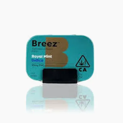 The Breez Royal Mint Hybrid Mints are a high-potency edible designed to provide a balanced "calm-but-not-couchlocked" experience. Each tin contains a total of 100mg THC, typically divided into 10 mints of 10mg each, though some variations may feature 5 mints at 20mg each.