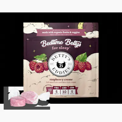 50mg Betty's Eddies Fruit Chews 10pk - Bedtime Raspberry Creme (THC:CBD:CBN)