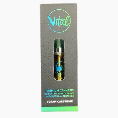 Vape cart. manufacturado por Vital utilizando los terpenos del strain 40 years