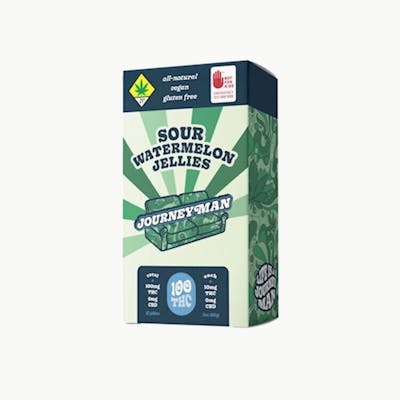 The stoner trifecta: refreshing, sour and weedy. Our Sour Watermelon Jellies are bursting with fruity sweetness and tangy tartness that will keep you coming back for more. All-Natural, Vegan and Gluten Free 100mg THC 10 jellies, 10mg THC each