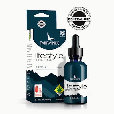 Designed to accentuate a relaxing lifestyle! Formulated with all-natural ingredients, fortified cannabis terpenes, and premium-flower-extracted cannabis oil. This tincture is a shelf above the rest.Ingredients: Organic Avocado Oil, Cannabis Oil with Standardized Terpenes Terpene Blend: Myrcene, Linalool, Caryophyllene, Proprietary BlendPotency: Cannabinoids:Per Serving: 10mg THCPer Package: 100mg THCWhy Avocado Oil?: We use avocado oil for its improved health benefits and higher bio-availability. Avocado oil also contains a high supply of healthy, desirable mono-unsaturated and poly-unsaturated fatty acids with a whopping 13% Omega-6 composition, a profile that has been shown to help support wellness. This makes avocado oil more than just a carrier oil; it’s one of the powerful active ingredients! Other tincture mediums are known to suffer from separation and have a high potential for microbial growth, and some are just plain unhealthy to consume. Fairwinds tinctures are formulated with an emphasis on purity and quality, are shelf-stable, anti-microbial by design, and the medium itself provides wellness support. With a soft, smooth, and non-oily feeling, avocado oil provides a clean, natural experience.How to Use:Start by gently squeezing the dropper at the top of the glass tube.Gently remove the dropper from the glass container and measure out to 0.6ml, using the lines on the dropper itself.Place the glass dropper directly under the tongue, and squeeze the rubber top to release the serving of oil. Wait 30-60 seconds before swallowing to allow the oil to fully absorb.The full effects can be expected within 10-30 minutes after the initial serving is administered.Continue to administer more tincture as necessary. Be sure to allow the oil to fully absorb between servings.Note: When sublingually absorbing cannabis oil, the body will naturally absorb each serving with ease when there is less carrier oil.