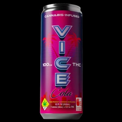 VICE Cola Soda A 355mL drink infused with 100mg THC Meet “VICE Cola,” the embodiment of a personalized journey into relaxation and flavor. Enveloped in the mesmerizing hues of synthwave aesthetics, this cannabis-infused beverage transcends the ordinary with a pulsating blend of nostalgia and innovation. With each sip, you’re not just tasting cola; you’re embracing an experience tailored to your mood. VICE Cola offers a spectrum of THC levels, giving you the power to curate the perfect chill. Picture the neon glow of the can as you navigate the retro-futuristic landscape of relaxation, where every fizz and sparkle echoes the beat of your own rhythm. In the world of VICE Cola, the future is in your hands, and it tastes refreshingly, uniquely yours. INGREDIENTS: Carbonated Water, Cane Sugar, Natural Flavors, Acacia, Phosphoric Acid, Potassium Sorbate, Sodium Benzoate, Cannabis Extract, MCT Oil, Caffeine, Ca Disodium EDTA. Contains Coconut.