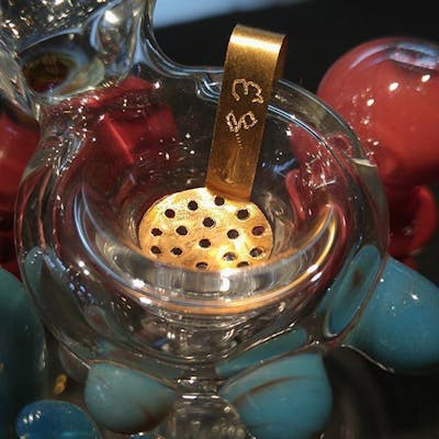 EZ Clean Screen Little Ash Skimmer Drop "Little Ash Skimmer" in the bowl, fill it up, enjoy fresh tasting herb, take it out, dump it and go again! Handle can be bent or cut to fit any pipe or bong. Made of brass sheet metal with a handle, looks like a tiny kitchen ladle skimmer. Bend the handle around the pipe bowl. Then the handle can be used to remove the screen & dump the ashes. Scrape & it's clean. Ready to fill again. Great for bubblers!