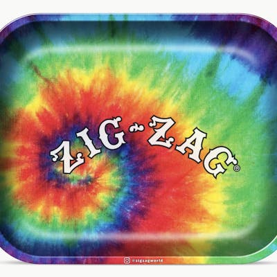 Zig-Zag Tie-Dye Rolling Tray (Large) Dimensions: 13.4" x 10.8" This Is How We Roll! Stay organized and enjoy your smoke break to the fullest with official Zig-Zag rolling trays. Made of Thick Tin with an Extremely Smooth Glossy Surface and High Edges with Rounded Corners.