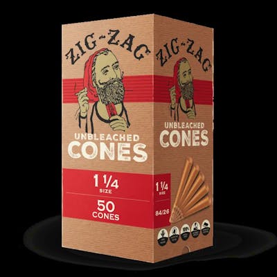 Zig-Zag Unbleached 1¼ Cones, 50-Pack Zig Zag's unbleached 1 ¼ cones are perfect for those looking to create sturdy, slow-burning joints without harsh chemicals. With 50 cones per box, this pack is a great way to keep your shelves stocked with perfectly rolled joints.