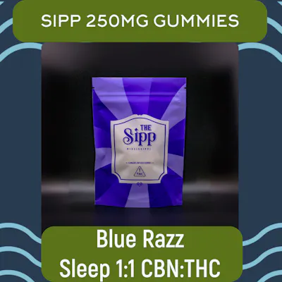 Blue Razz Indica Gummies 1:1 CBN 250MG - The Sipp