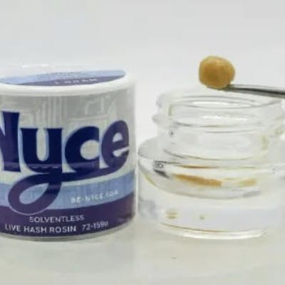 A juicy 8.9% terpene profile with orange, sweet cherry, spice, and pine. Bright, flavorful dabs with a balanced, mellow finish.Live Rosin by Nyce, an exceptional 1g concentrate designed for genuine cannabis enthusiasts. This solventless product is derived from fresh-frozen, high-quality flower, ensuring that it retains the complete terpene profile and potency of the original plant — providing an unparalleled, full-spectrum experience.