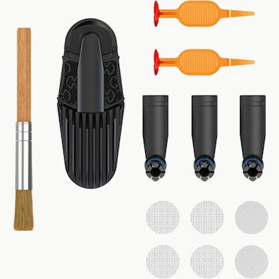 The Wear & Tear Set includes all the spare parts necessary to renew the MIGHTY(+) Cooling Unit. 3 pcs. Mouthpiece 1 pc. Cooling Unit 1 pc. Screen Set 2 pcs. Filling Chamber Tool 1 pc. Cleaning Brush