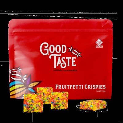 Experience a nostalgic twist on a classic childhood treat with Good Taste Fruitfetti 100mg Crispies. These delectable, gluten-free cannabis edibles combine crispy rice squares with butter and THC distillate for a delightful flavor and balanced effects. Each package contains 10 Fruitfetti Crispies, totaling 100mg of THC, making them perfect for newcomers and seasoned enthusiasts. Our precise infusion process ensures consistent and reliable effects with every bite. Whether you’re looking to relax, alleviate stress, or simply enjoy a tasty treat, Good Taste Fruitfetti 100mg Crispies are the ideal choice.