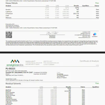 20 pieces per container. Indulge in the invigorating blend of zesty pink lemonade and THC in Sound View's infused Pink Lemonade Gummies. The sweet taste of strawberry coupled with tart lemon makes each bite as refreshing as a cool ocean dip on a hot summer's day. Rejuvenate with Sound View. Ingredients Organic Tapioca Syrup, Organic Cane Sugar, Water, Pectin, Cannabis Oil; Less than 2% of: Natural Flavor, Lemon Oil, Vegetable Juice (Color), Citric Acid, Sodium Citrate, Ascorbic Acid, MCT Oil. Allergens Warning: Contains Tree Nuts (MCT Oil). Serving Size THC/Serving (1): ~4.83 mg THC/Pack (20): ~ 96.6 mg