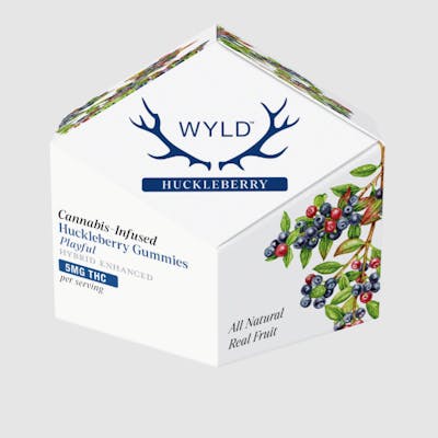 100mg THC per pkg 10mg THC per gummy Wyld Huckleberry Hybrid gummies are made with real fruit and enhanced with a balanced hybrid terpene profile that assists in creating a sense of cheerfulness and overall well-being. Ideal for your day-to-day adventures!