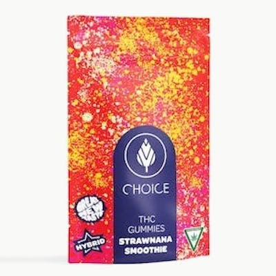 5mg THC per serving - 20 servings per pack - 100mg THC Looking for a gummy bursting with flavor and feels? Look no further, Choice Chew's Strawnana Smoothie has what you're looking for. We took the irresistible flavor of a ripe banana and the bright flavor of fresh strawberries and smashed them together into one delicious smoothie flavored gummy.