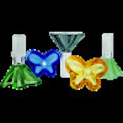 Glass - ($10) 2″ 14mm Color Butterfly Shaped Flower Bowl