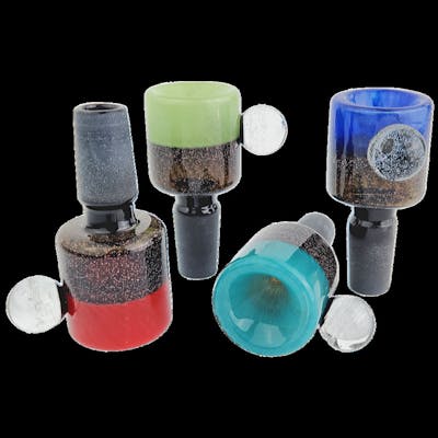 2.5” Glass Flower Bowl Vac Stack Half Dichro Half Dichro Marble Black Joint 14mm Multiple Colors Available