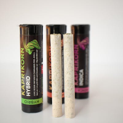 Two 0.9g straight-rolled, live resin infused pre-rolls Lineage: GG4 x OG Kush Breath Terpenes: n/a Production Date: 11/19/2025 Processed by: Hash Hamilton Flower Grown by: Kaprikorn Grow Type: Indoor Location: Near Eugene, OR Since 2017, Kaprikorn has been dedicated to providing the best supply of cannabis clones to Oregon recreational producers and medical growers--and now we're flowering them out too! At our new facility located in Eugene, Oregon we cultivate unique flavors of indoor flower in soil. We are locally owned and operated, no investors, just Oregonians. Learn more at https://www.kaprikorn,com/