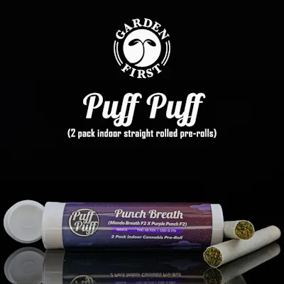 Lineage: Oreoz x Devil Driver Meet Puff Puff — two perfectly rolled 0.65g straight joints, sealed in a sleek tube for easy carry and fresh flavor. These are the same high-quality pre-rolls found in our Puff Packs, now available in a convenient 2-pack format. Crafted with premium flower and a smooth, even burn, Puff Puff is ideal for sharing or saving one for later. 100% biodegradable, Plant-Based packaging. Always fresh material from a recent harvest (we harvest 20 times a year!) Hand packed with love. Learn more at https://www.gardenfirstcannabis.com/