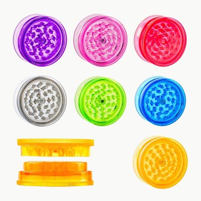 60mm 2-piece grinder with strong magnetic closure Durable acrylic construction with precision-cut grinding teeth Smooth, effortless rotation for a consistent grind Assorted bright colors for maximum retail appeal