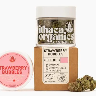Strawberry Bubbles is a sativa-leaning hybrid bursting with fresh strawberry and citrus aromas accented by a subtle touch of funk. Its bright, juicy flavor delivers a smooth smoke that uplifts the mood, sparks creativity, and energizes the mind while keeping the body at ease.