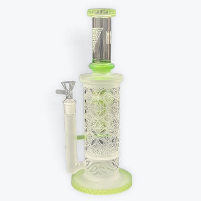 Elevated and elemental, the Sacred Straight Sandblasted water pipe features a stunning full-body geometric frost pattern, giving it a sacred temple feel with modern precision. Handcrafted from thick borosilicate glass and standing 12" tall, it’s equipped with a 14mm female joint for reliable performance in every session. A true statement piece that balances form, function, and ritual. Retail Unit: One (1) Water Pipe Height: 12" Width: 4.75" Joint Size: 14mm Joint Type: Female Material: Borosilicate Glass