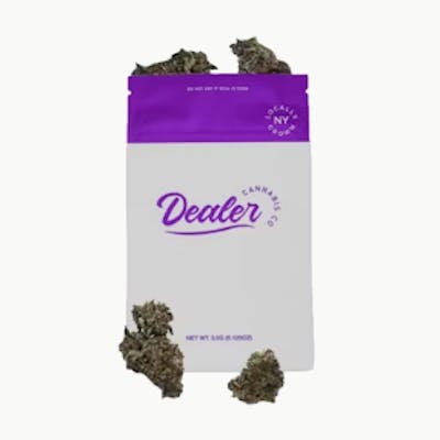 This indica-dominant hybrid strain, is a unique blend of the classic Lemon Cherry Gelato & Kiwi Kush. This strain will induce a happy, couch-locked state, ideal for unwinding with your favorite comedy. Dominant Terpene: Caryophyllene (Pepper | Stress Relief) Other Terpenes: Limonene (Citrus | Euphoria), Myrcene (Herbal | Calming) As a testament to our New York roots, Dealer - a veteran-owned brand, passionately cultivates this authentic strain in the heart of New York, for New Yorkers, by New Yorkers.