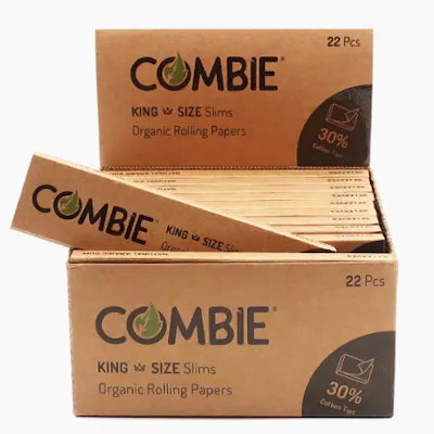 Discover the convenience of Combie King Size Slim. This pack integrates 32 unbleached, ultra-thin leaves and 32 cardboard filters in one handy booklet. Enjoy a slow, even burn and the purest flavor of your herbs thanks to its natural gum arabic. Perfect for rolling on the go without missing a beat.