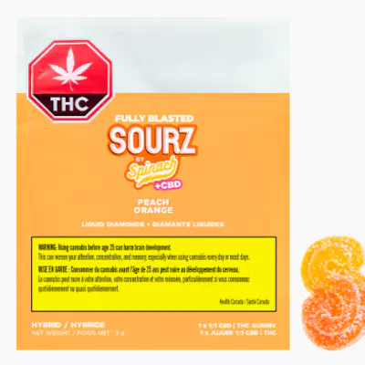 SOURZ BY SPINACH® - Fully Blasted Peach Orange 1:1 THC CBD Gummy - 1 PACK
