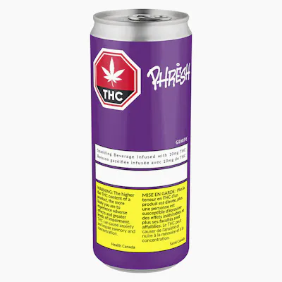 PHRESH Grape is a sparkling water full of bold concord grape flavour. This sparkling water contains a full 10 mg of THC potency with no added sugar.