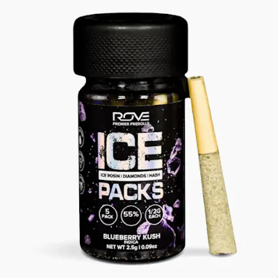 Rove Ice Packs prerolls, the world’s first triple-infused preroll. Made with premium-grade flower fully-infused with THCA diamonds and solventless ice hash rosin, expertly rolled and coated in more ice hash. Super smooth and ultra potent, Rove Ice Packs test up to 50% THC. Welcome to the next evolution of prerolls.