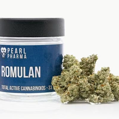 Romulan was created decades ago by combining all-but extinct heirloom varieties from Thailand and Colombian strains. The result is a vigorous hybrid with a heavy, raw terpene profile. Romulan has a sweet earthy smell and taste, with hints of pine and citrus. It produces a deeply relaxed body high with a dreamy, floating sensation.