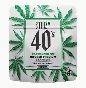 Elevate your flower experience with the new STIIIZY 40’s infused flower. We have expanded our 40’s line by incorporating our premium cannabis flower infused with our finest THC-A Diamonds for an extra punch. We call them 40's because our infused flower strains are potent, testing around 40% +/- total cannabinoids. Now you can roll your own 40’s with STIIIZY infused flower, the possibilities are endless with unmatched potency.