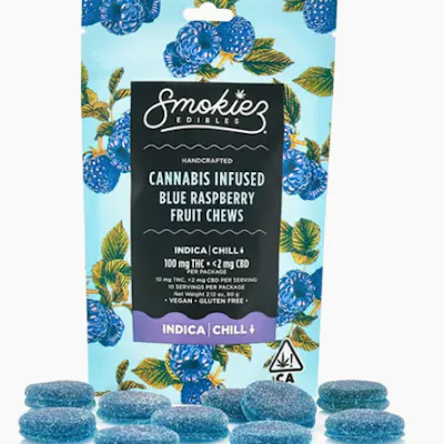Smokiez INDICA Sour Blue Raspberry Fruit Chews - 100mg