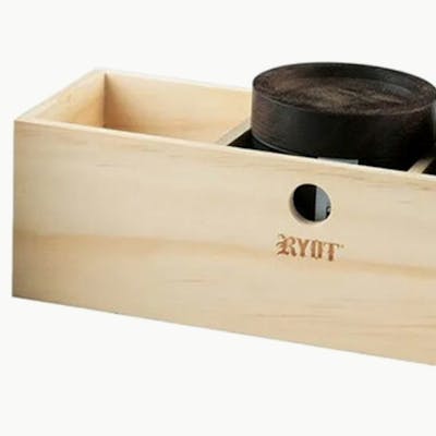 Designed to accommodate RYOT glass jars, the RYOT jar box is ideal for storing herb. The box comes complete with your choice of 3 black or 3 clear jars with wooden lids. This innovative storage solution facilitates storing three unique blends in durable and airtight containers. All RYOT jars feature a high-quality silicone and are free of chemicals that could alter your blend