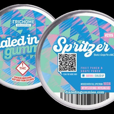Presenting the bombastic Spritzer batch! These fruitastic gummies from the wizards at The Trichome Collective are your ticket to a taste bud rave. They're the life and soul of any shindig, sure to spice up any outing you go to. They're a mad scientist's mix of R*ntz, Grape Pie, and Mac strains, resulting in a roller-coaster ride of fun and frolics. A 6.77% terpene profile featuring stars like Caryophyllene, Limonene, and Linalool, adds a twist to this gummy saga, giving you an energetic and uplifting high. With a THC score of 80.2% and a CBG of 2.87%, these are not your grandma's gummies. So, grab a tin of Catalina Gummy Spritzer, and prepare for lift-off!