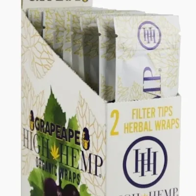 The High Hemp CBD Wraps feature (25) flavored all-natural blunt wrap 2-packs with CBDs for a next-level herbal experience. Multi flavors available! The first patent pending organic CBD Blunt Wraps are here to make blunts all-herbal! High Hemps are 100 percent organic hemp based and third party lab tested.