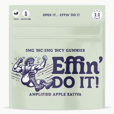 Stuck staring down a to-do list? Drowning in deadlines? We totally feel you. That's why we went mad scientist to develop Effin' Do It! We added some THC, some THCV, and our Amplified Apple flavor into a gummy. We hope you get to Effin' Do It! (whatever "it" is). Effin’ Do It is your productivity powerhouse in gummy form, packing 10mg of THCV and 10mg of THC to help you focus, energize, and crush your goals. Known as the “motivational cannabinoid,” THCV teams up with THC to sharpen your mind and boost your energy, making it perfect for tackling to-do lists and powering through projects. Whether you’re facing deadlines or need an extra push to get things done, Effin’ Do It is the ultimate go-getter’s snack, designed to keep you moving and on top of your game.