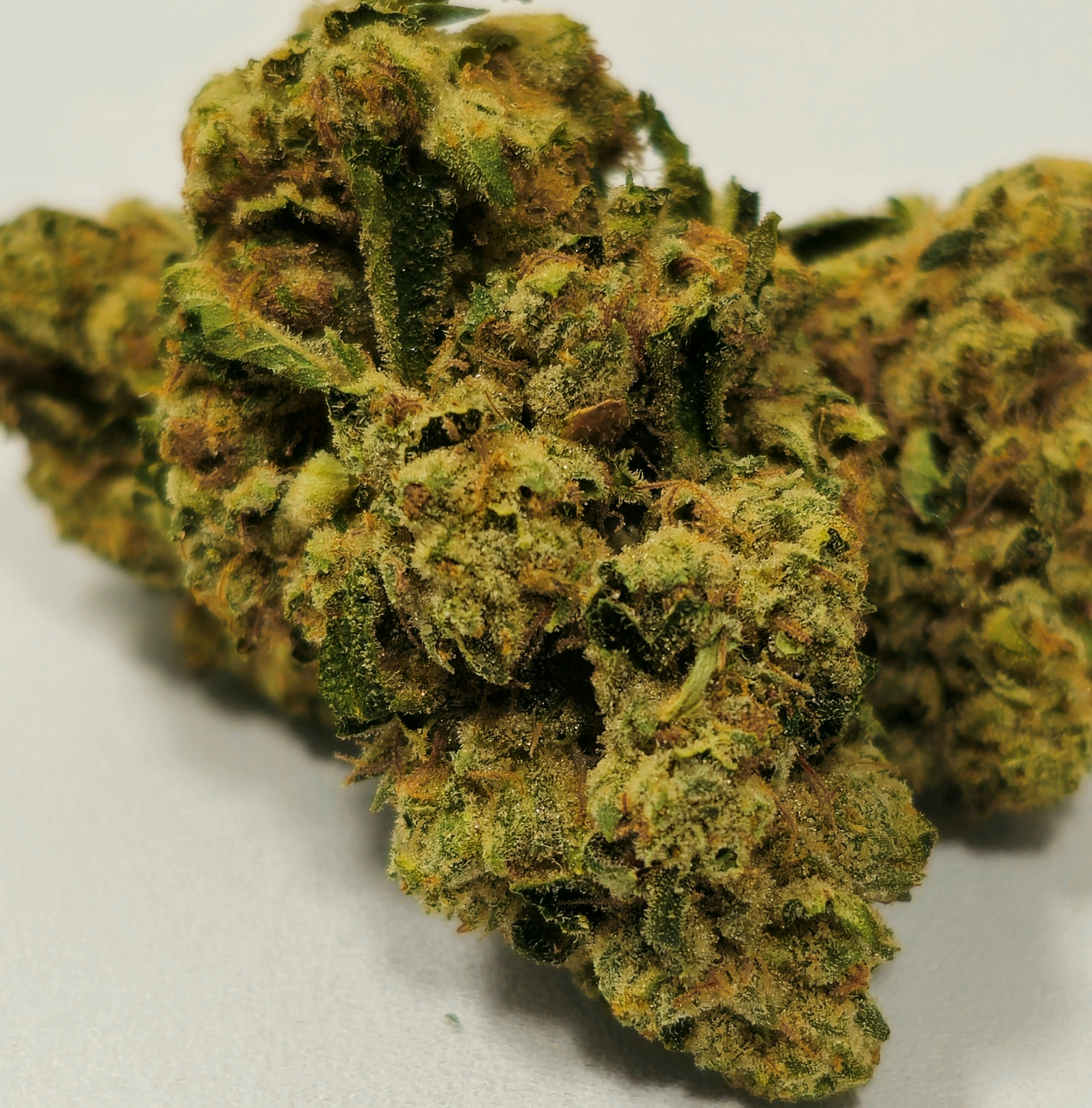Divine Genetics also has a strain that’s a cross of Chemdawg #4 and GSC that it calls Chem Cookies. Despite the similar genetics, it appears to be a different strain with different phenotypes for both parents, although it’s worth noting that some people do confuse two strains. GMO Cookies is said to produce olive green buds with bits of purple and orange blanketed by a mantle of trichomes.