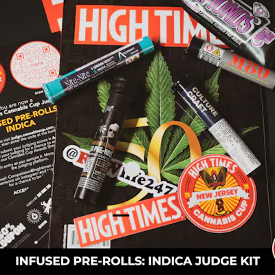 Step into the judge’s seat for the most iconic cannabis competition in the world! The Infused Pre-Rolls Cannabis Cup Judge Kit features thirty infused pre-rolls from New Jersey’s leading brands, each blending top-shelf flower with premium concentrates for an elevated smoking experience. This collection celebrates potency, innovation, and craftsmanship. From live resin and rosin infusions to diamonds and distillate blends, these pre-rolls showcase the state’s most creative takes on the art of infusion. As a judge, you’ll evaluate smoothness, consistency, potency, flavor, and the overall experience for the People’s Choice competition. Each kit includes everything needed to complete the judging experience from start to finish. You’ll receive the full RAW and Elements setup used by official judges, complete with papers, tips, lighter, ashtray, and more, along with a High Times tote bag, 50th Anniversary Magazine, and sticker. Every accessory is included to help you light, inspect, and score each infused entry like a true Cup judge. What’s Inside Total cannabis weight: 5.7 grams (5 entries total) Infused Pre-Rolls Indica Entries Rule 34 — Culture Craft Cannabis Collective (1G) Cushion Cut Cut — Elyon Cannabis (2G) Growfather Grandaddy Purp Berry Infused Preroll — Little Leaf Labs (1.2G) Liquid Diamond Infused – Purple Dream — M80 (0.5G) Nite-Nite Formulated Preroll – 1g (1pk) THC:CBN:CBD — Nite-Nite (1G) Judge Gear & Accessories High Times Tote Bag High Times 50th Anniversary Magazine High Times Sticker RAW & Elements Accessories (papers, tips, lighter, ashtray, and more)
