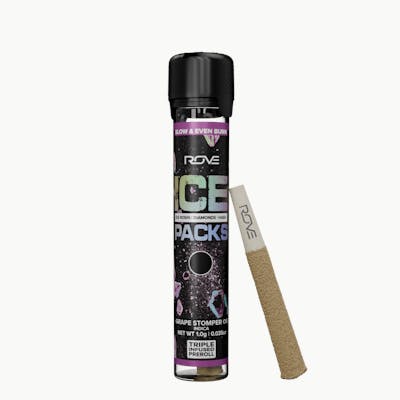 Rove 1G Ice Pack Preroll, is the world’s first triple-infused preroll. Made with premium-grade flower fully-infused with THCA diamonds and solventless ice hash rosin then they're expertly rolled. Super smooth and ultra potent, Rove Ice Packs test up to 40% THC. Welcome to the next evolution of prerolls. Premium Organic Flower. With its unique flavor profile of sweet and earthy notes, this rare sativa marijuana strain is the perfect choice for cannabis connoisseurs looking for an energizing yet calming escape. Drift into tranquility with Grape Stomper, a soothing indica preroll that gently merges mind and body. This carefully crafted blend slowly unwinds tension, easing your mind into a dreamy haze. Perfect for when you need to unplug and drift off.