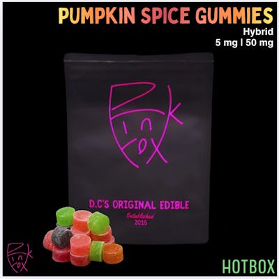 Pumpkin Spice Gummies (5 mg/50 mg) by Pink Fox offer crisp fall-spice sweetness meets mellow uplift in this seasonal treat. Ideal for a cozy afternoon pick-me-up or creative break with smooth, easy vibes. Hybrid