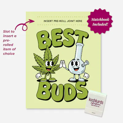 Because the best moments are meant to be shared. The 2026 Limited Edition Best Buds KushKard is a feel-good cannabis greeting card celebrating friendship, connection, and classic 420 vibes. Featuring two adorable characters — a smiling cannabis leaf and a happy bong — this card brings humor, heart, and functionality together in one irresistible design.