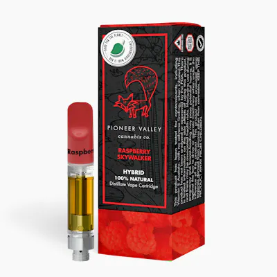 Hybrid Our Raspberry Skywalker vape has the sweet taste of raspberries combined with gassy spicey herbal taste of Skywalker OG, this strain has a true hybrid effect and is known to stimulate your appetite. This flavor was created by combining Skywalker OG cannabis terpenes with the addition of natural botanically derived terpenes. Pioneer Valley Cannabis Company’s Inspired line of all natural vape products deliver a smooth, great taste with none of the additives or fillers. Pure distillate and naturally derived terpenes from our partner, a world-renowned leader in creating award-winning terpene-based formulations.