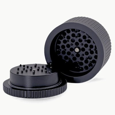 Meet the latest Stache Grynder to join the line-up; the 360 Grynder. Designed with holes in the side wall that prevents build up and delivers a smoother experience. With precision, ease, and versatility in mind, the Grynder 360 is here to redefine the way you prepare your materials. Includes pollen scraper and cleaning brush. 52mm tall x 75 mm in diameter.