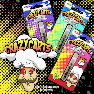 dope cooks Sour Apple Crazy CartThe Chef has gone crazy! He's added tasty botanical terpenes to his purely potent Melted Diamonds to create these premium Cannabis Vape Carts. Melted Diamonds are made by growing pure THCa crystals and then melting them into pure THC oil. You can expect a potent, flavorful, and discreet experience when you fire up a Crazy Cart! | Pesticide Free | Distillate Free | Big Flavor | Discreet Aroma | Super High PotencyExtraction Solvent: Close Loop BHOCartridge: CCell M6T-SE - Low lead Brass Center Post, BPA-Free Thermoplastic Tank, CCell Standard Ceramic Heating Element.