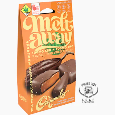 Per Package: 10 Pieces and 100mg THC & 100mg CBD.Per Piece: 10mg THC & 10mg CBDCannabis Oil: Full Spectrum Strain specific cannabis extract made in-house with organic food-grade ethanol. Strain varies ask budtender for current strain.Product Description: Satisfy your cravings with Verdelux's Meltaway Honey Caramelo Truffles CBD THC edibles! These delectable truffles are made with the perfect combination of sweet honey and rich caramel, and are packed with the power of CBD and THC for a truly indulgent experience.