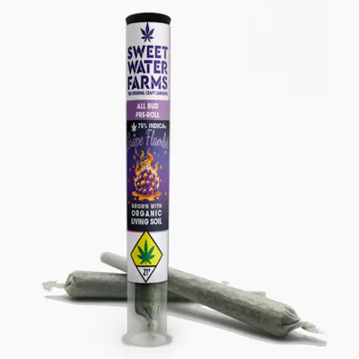 Sweetwater Farms Grape Flambe Genetics: Grape Diamonds x Grape Cake x Grape Stomper--75% Indica Effects: A cozy, deep hitting body high.Flavors: Explosive notes of grape candy. Suggested Activity: Flavor TripProduct Description: Pre Rolls from Sweetwater Farms are always rolled using full-flower, meaning no shake or trim is used inside our joints. They are wrapped in ultra-thin, pure rice paper for an always clean and tasty smoke!Available Sizes: (2pk total weight 1g).