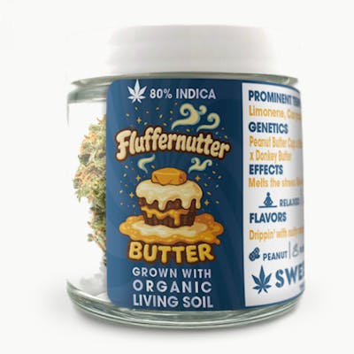 Sweetwater Farms Fluffernutter Butter Genetics: Peanut Butter Cup X Marshmallow OG X Donkey ButterEffects: Melts the stress like butterFlavors: Drippin' with nutty, marshmallow magicSuggested Activity: Zone outSweetwater Cannabis Flower: This brand cultivates cannabis indoors using living soil and organic compost tea blends to enhance plant health and terpene expression. Their controlled environment ensures superior quality, producing flower with exceptionally bold and vibrant terpene profiles. Indoor Grown, Slow Cured, Small Batch.Clean Weed Practices "This is why we ONLY use pesticides on a "AS NEEDED" basis and also only use Organically certified brands" Full Pesticide Statement